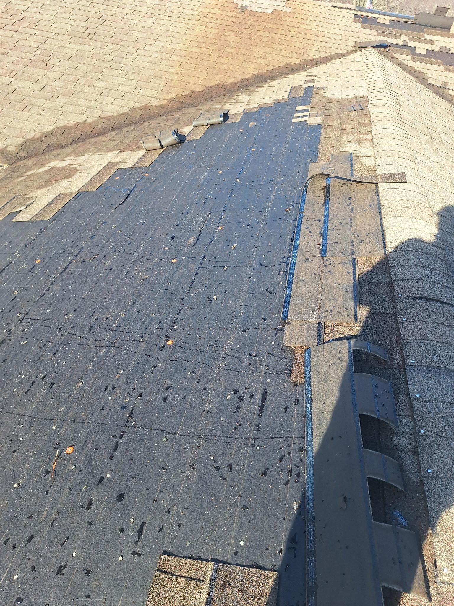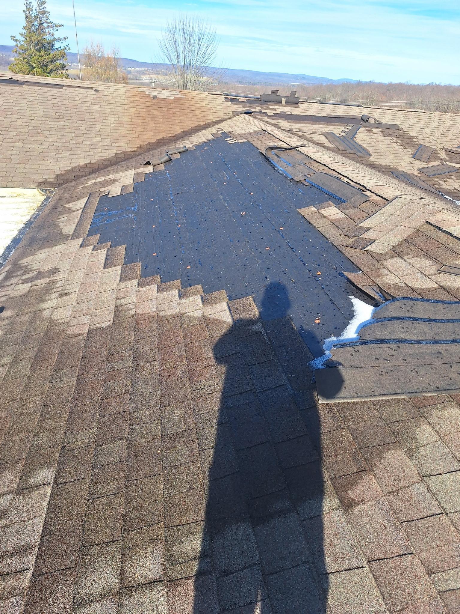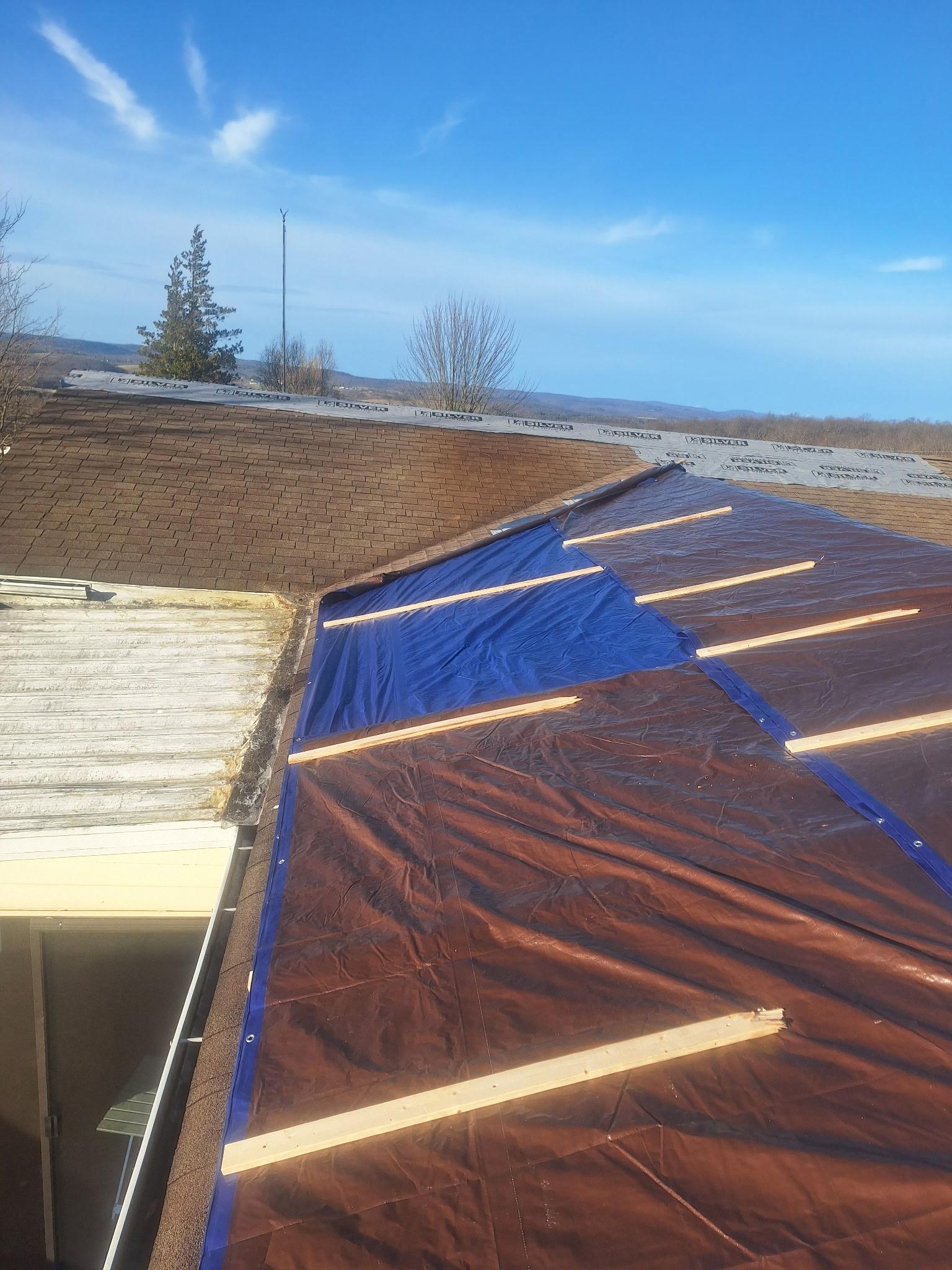 The customer had roof damage caused by a wind storm. They needed emergency roof tarping and water mitigation in the attic