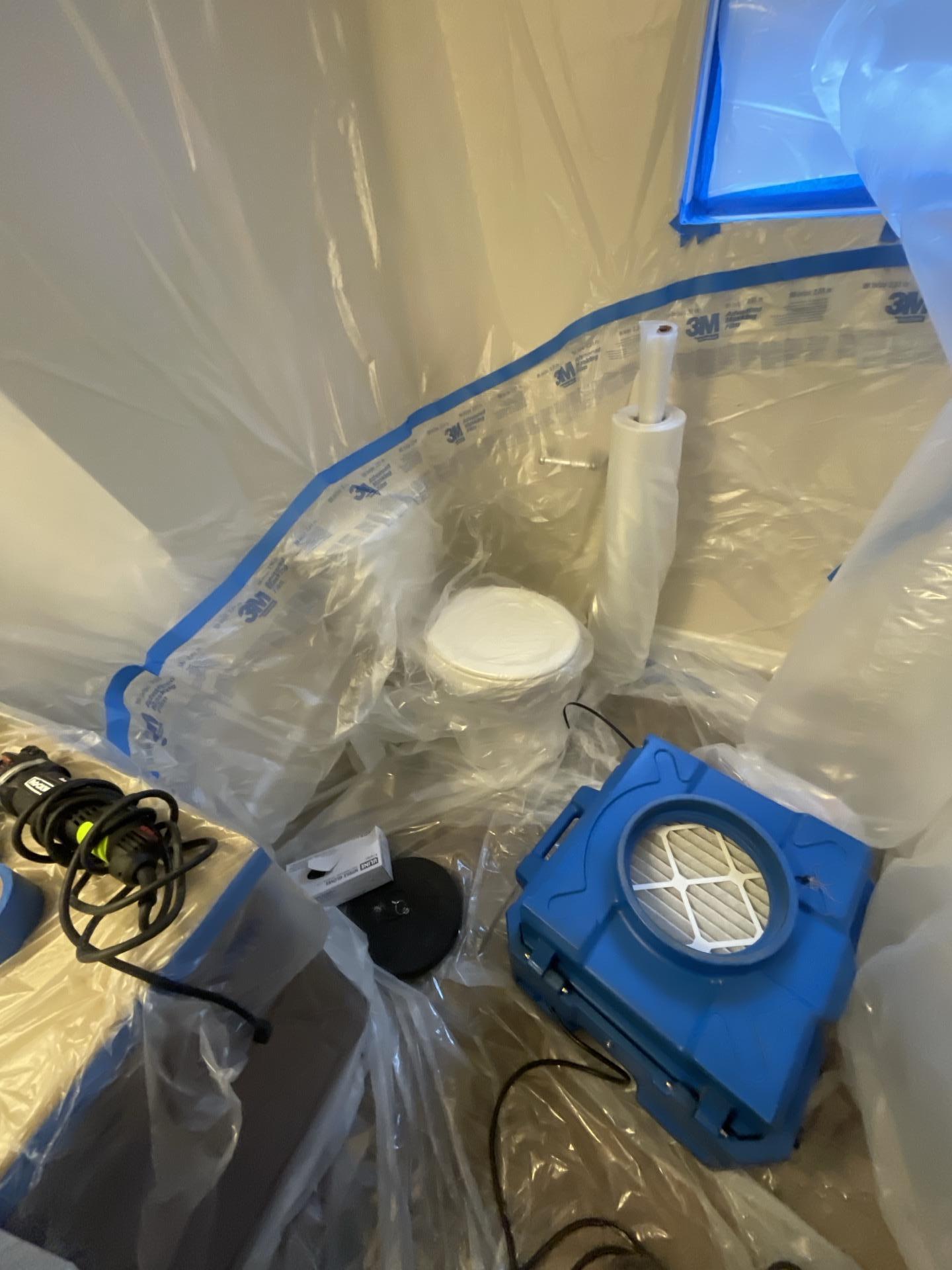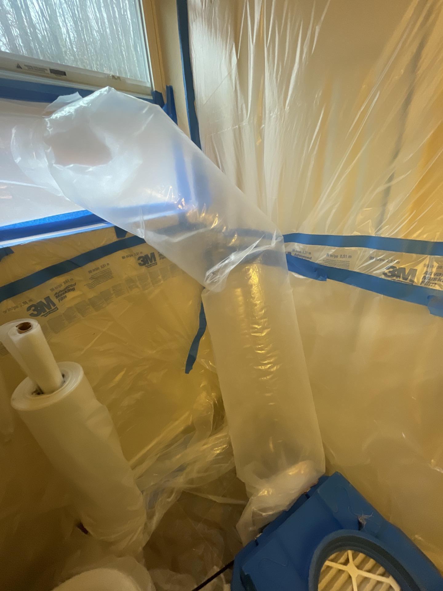 After tarping the roof, Crossroads Proeprty Rescue assessed the extent of the damage, set up containment to protect the rest of the house, removed the damaged ceiling drywall, made sure the structure was dry and prepared the area for repairs.
